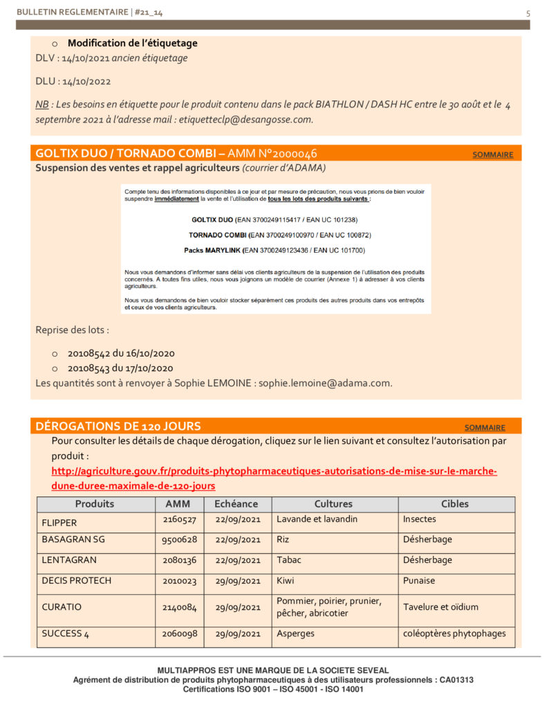 Informations règlementaires