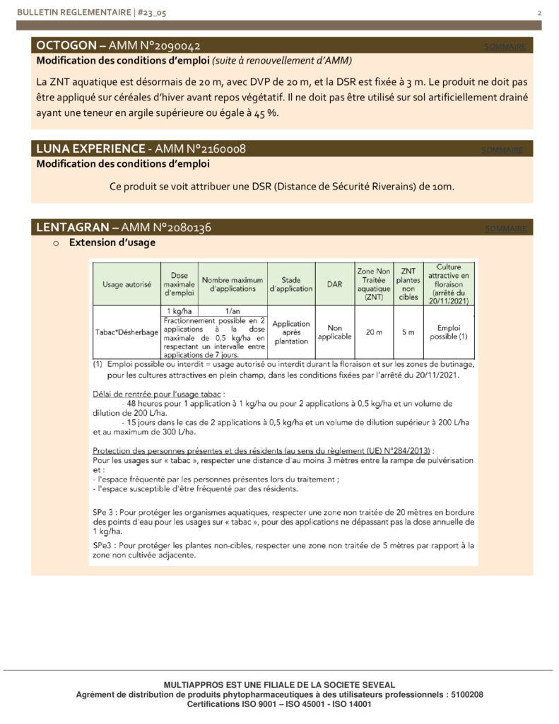 Informations règlementaires