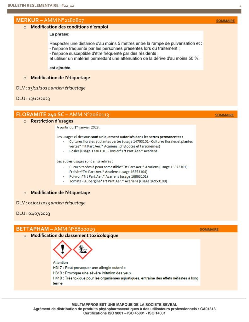 Informations règlementaires