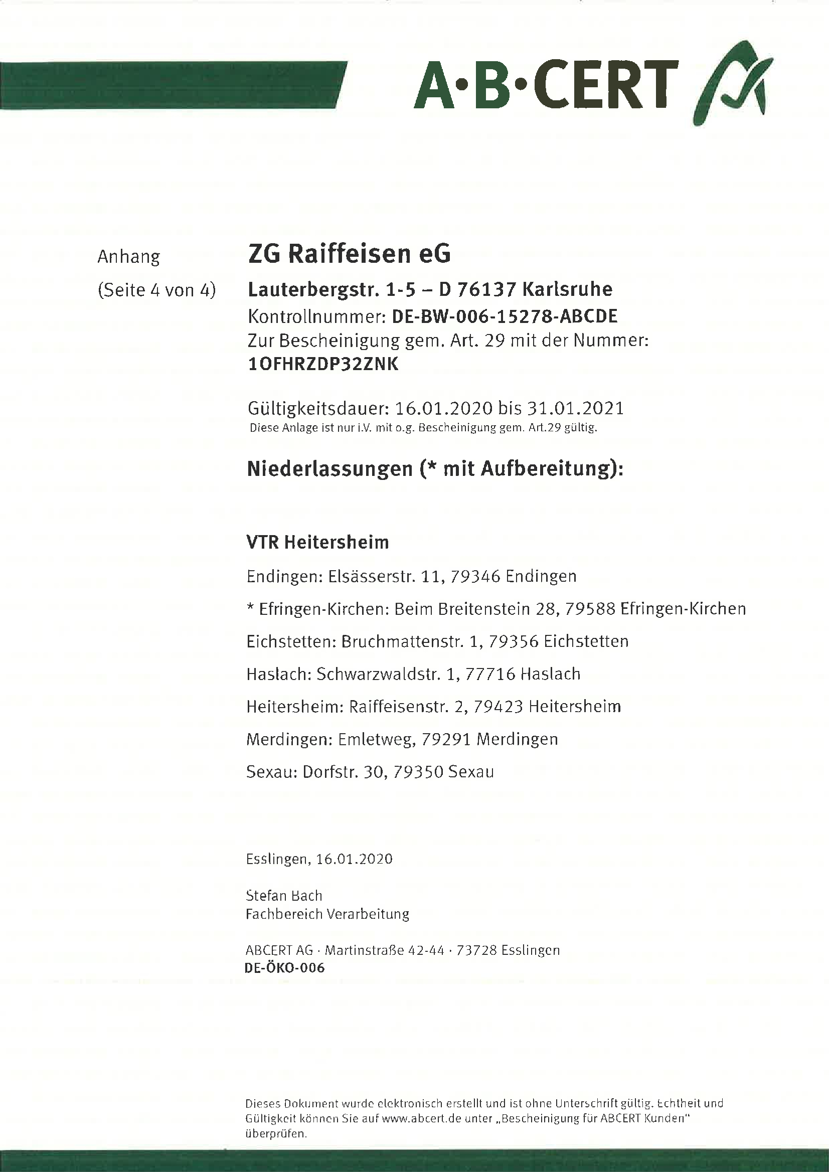 Certificat Bio